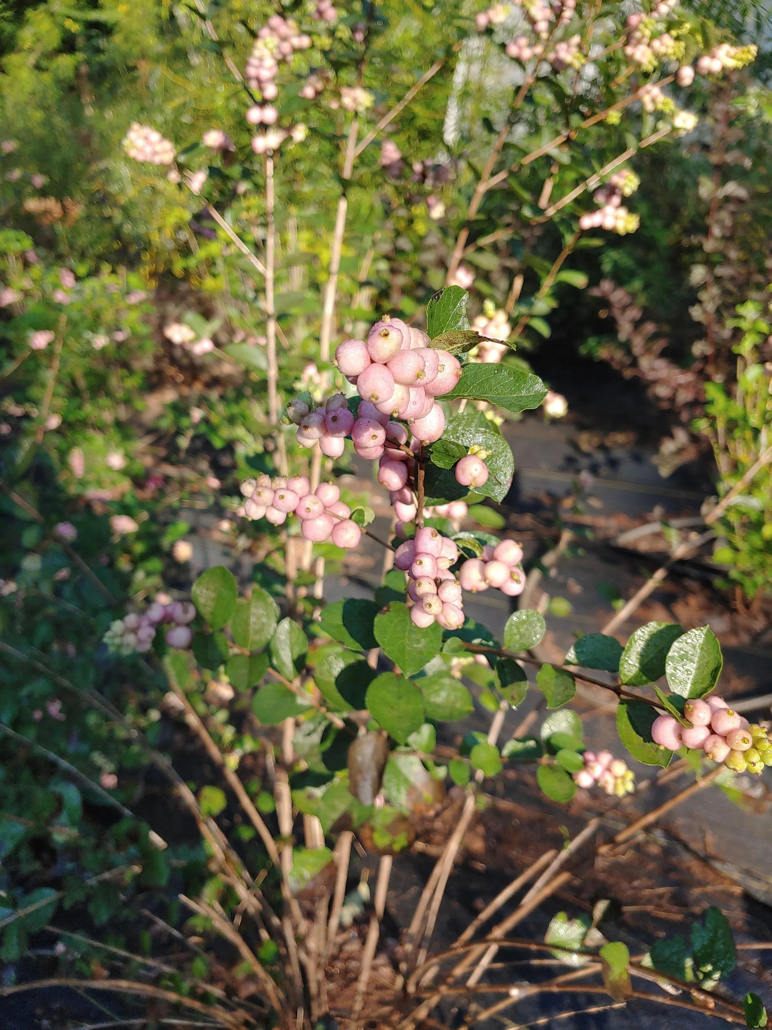 Snowberries- kinda of an odd choice of name for a fall berry. But oh well! Snowberries are produced on shrubs- they are in the same plant family as honeysuckles- which explains why they grow so well in our climate.